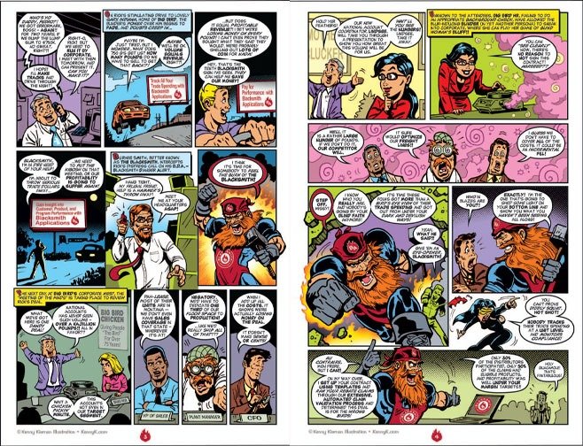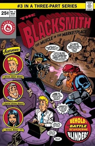 “The Blacksmith: The Muscle in the Marketplace” is a promotional comic book series created for Blacksmith Applications (a division of TELUS Consumer Goods). Fun stories featuring comic versions of real-life BA employees and their adventures empowering sales and trade promotions — with fictional superhero The Blacksmith!