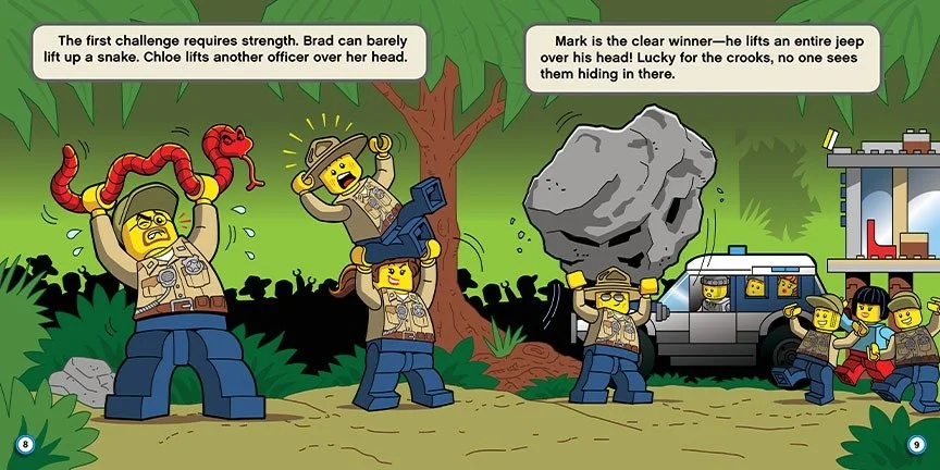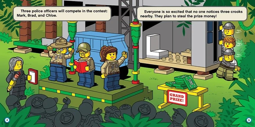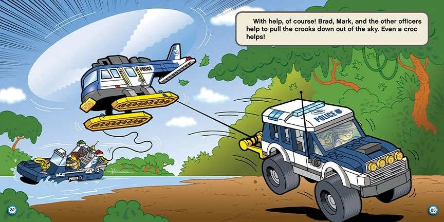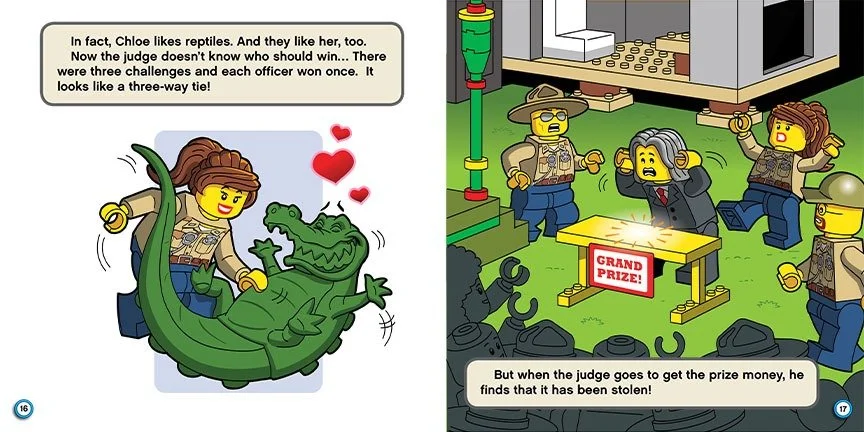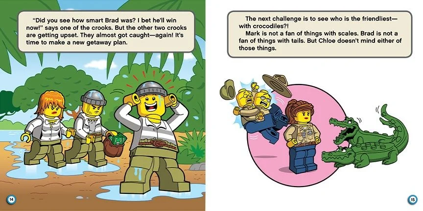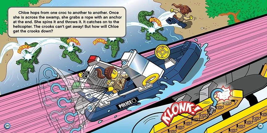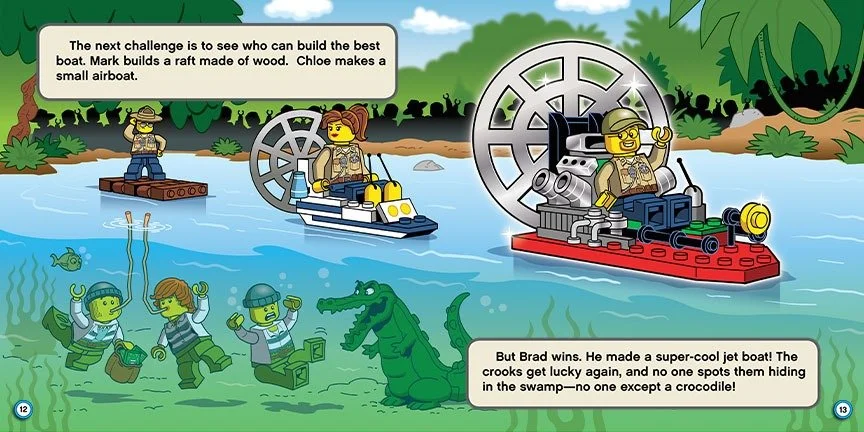 An action-packed and funny adventure in the swamp with the LEGO® City Police! When the LEGO® City Swamp Police hold a contest, they expect to have a fun day--one without trouble. Too bad no one told the crooks! Now, three thieves have stolen the prize money and are trying to flee. Who will win the contest, and will the crooks get away with their crime?